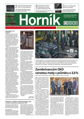 V únorovém vydání Horníka naleznete dvě speciální přílohy: Poslední vozík Dolu ČSM a Ukončení provozu úpravny. Přináší mimo jiné informace o tom, že zaměstnancům vzrostou mzdy v průměru o 3,5 %, oznámení o vyhlášení voleb člena dozorčí rady a o setkání s vybranými zaměstnavateli pro odcházející zaměstnance konaného v rámci programu Nové šichty.